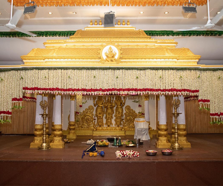 Sacred Symbols: Adorned with traditional motifs and sacred symbols, the Mandapa resonates with cultural significance, infusing the space with blessings and positive energies.