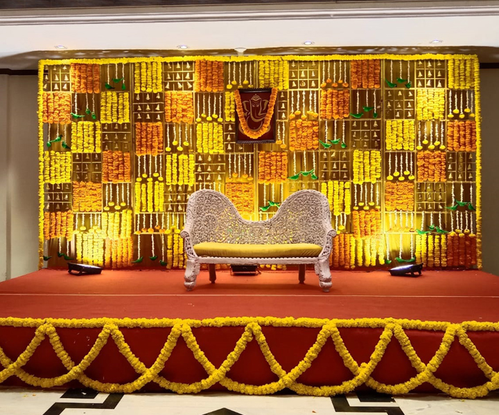 Tailored to suit your taste and preferences, our team works closely with you to ensure that the Pandal Decoration harmonizes seamlessly with your home's architecture and your individual style.