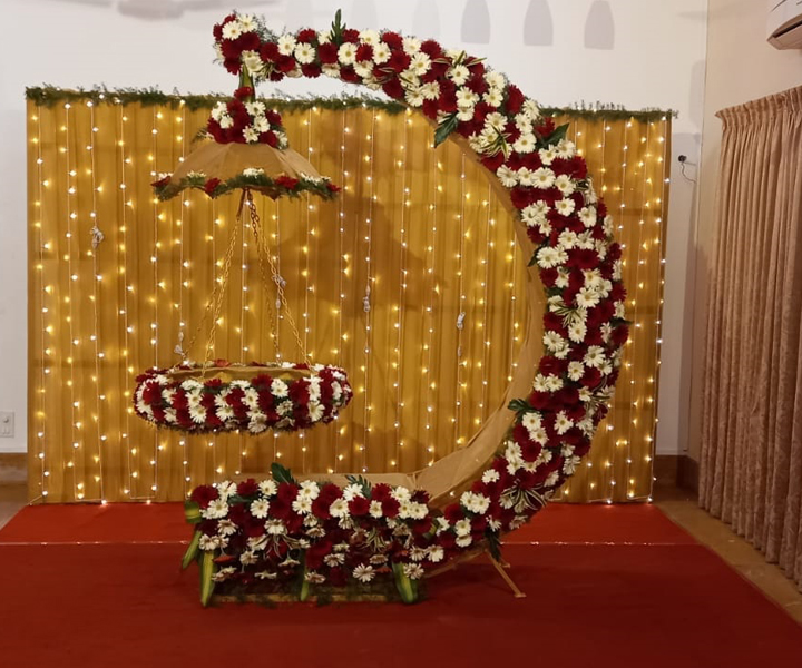 Color Harmony: The chosen flowers, in a palette of [colors], harmonize seamlessly, adding a burst of color that complements your style and surroundings. Personalized Touch: Whether adorning your entryway, living room, or any chosen space, this decoration welcomes guests with a personalized touch that reflects your unique taste. S.Sarangan Flower Shop is the best name entrance decorators in and around chennai.